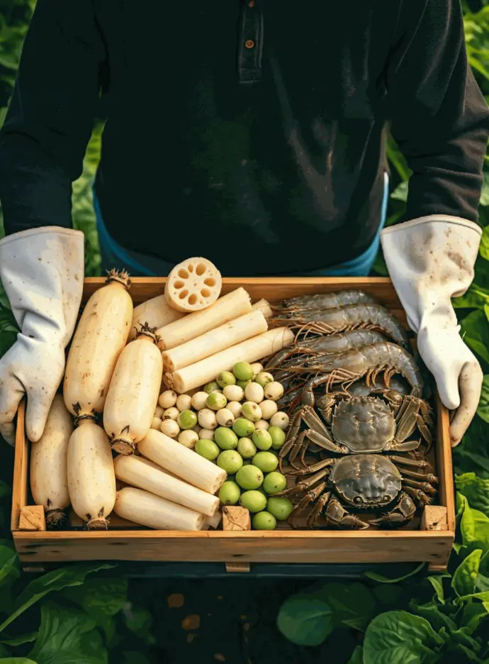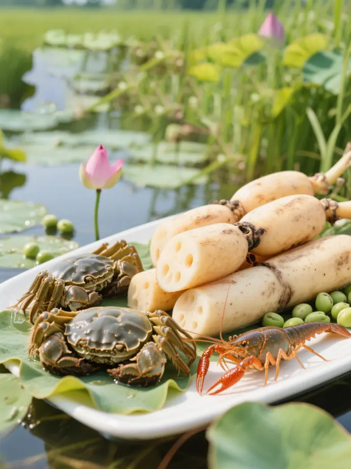 洪湖五大国家地标:青泥巴莲藕、时令藕带、生态莲子、稻虾共养清水虾、无腥大闸蟹,全链严控,鲜味可溯。
